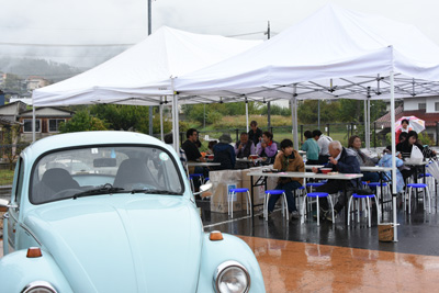 会場には、坂城駅前多目的広場に静態保存されている169系電車が活躍した昭和40年~50年代の自動車(クラシックカー)の展示をはじめ、ボンネットバスの乗車体験、Nゲージ・ジオラマ走行の展示、昭和の懐かしい鉄道グッズなど、電車好き、車好き、レトロ好きの心をつかむものが満載で、鉄道ファンや家族連れなど多くの方が訪れにぎわいました。また、野菜、お弁当、峠の釜めし、ラーメンやクレープなど美味しいものが揃った出店も立ち並び、小さな子どもから青春の日々を昭和時代に過ごしてきた方まで、各駅停車の旅を楽しむかのようにのんびりとした時を楽しんでいるようでした。