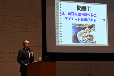 男女共同参画社会の実現のための啓発・推進を目的に、坂城町女性団体連絡会と坂城男女共同みんなの会が実行委員となり、11月15日(土)、さかきテクノセンターで「女(ひと)と男(ひと)ふれあいさかき2025 ~すべての女と男が輝くまち~」が開催され、記念講演として、元NHK「ためしてガッテン」演出担当デスクの北折一さんを講師としてお迎えし、「ガッテン流!健康長寿の裏ワザ!教えます~介護になって家族に迷惑をかけるのはいやだ!スペシャル~」と題して、健康と病をテーマに、認知症・ダイエット・食事について問題形式や冗談を交えた講演で、会場から笑いが巻き起こる場面もあり、楽しく、そしてためになるお話しをしていただきました。