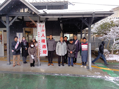 日本では、翌年の1949年に法務省と全国人権擁護委員連合会が12月4日から10日までの一週間を「人権週間」と定め、各地で様々な取り組みが展開されます。坂城町では、12月4日(木)から10日(水)までの1週間を第77回人権週間と定められています。12月4日(木)には、坂城駅及びテクノさかき駅で、人権擁護委員、民生児童委員協議会、町議会、長野地方法務局上田支局などの皆さんが、駅を利用する方に啓発物の配布を行いました。寒い中、ご協力いただいた皆さまありがとうございました。