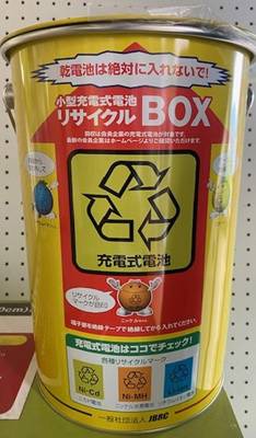 サンデーリサイクル、役場入口に設置している回収容器、リサイクル協力店(鉛蓄電池を除く)で回収しています。充電式電池回収協力店は、一般社団法人JBRCのホームページで確認できます。こちらから