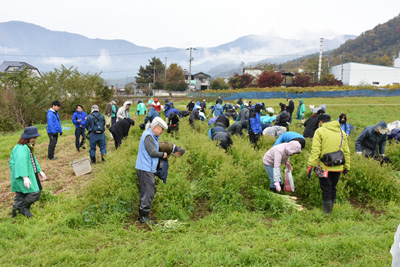 ▲収穫会場(収穫の様子) |