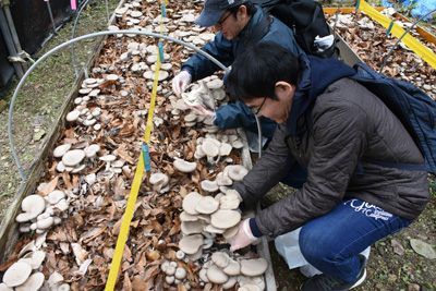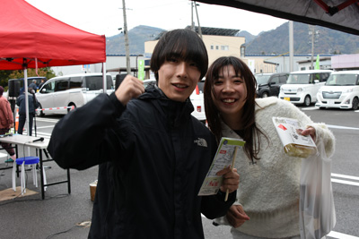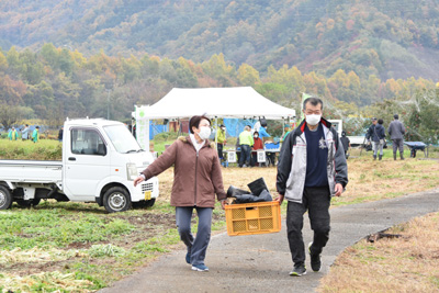 さかき地場産直売所「あいさい」では、ねずみ大根などの農産物・加工品の販売、坂城特産ワイン、きのこ、焼き栗、やきいも、シイタケ、ねずこんグッツの販売などさまざまな商品が店頭に並びました。また、会場内では、抽選会場や原木きのこの収穫体験も同時に行われ収穫を楽しんでいました。