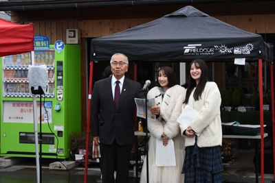 「ねずみ大根まつり2025」の開催式では、柳澤実行委員長、特別ゲストの塚本颯来さんと森青葉さんが開催宣言をされました。