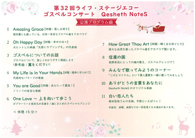 プログラムは、ゴスペルの説明があったり教科書にも載っているAmazing Graceや、信濃の国など私たちが知っている曲を披露され、観客のみなさんと一緒に合唱をしたり拍手、手を振ったりと、会場内が一体となり、アンコールでは、クリスマスソングメドレーを披露し、音楽を通じて、皆様に喜びと感動を届けられたコンサートでした。