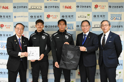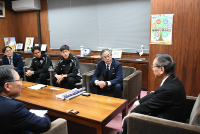 12月1日(月)AC長野パルセイロの澁谷社長、加納選手と藤川選手が、2026シーズンに向けて山村町長に表敬訪問をされました。