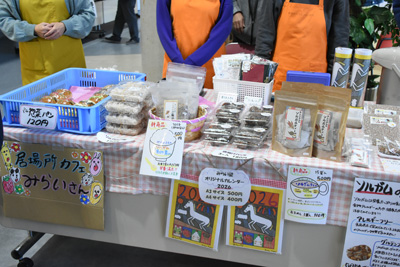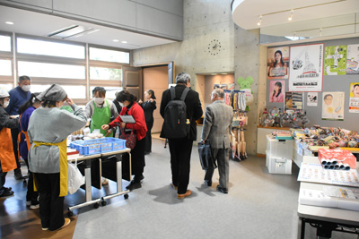 ロビーでは、福祉事業所による手作りクッキーやパンなどの軽食やふきん、手作りカレンダーやペンケースなどの物販も行われ、多くの人が購入していました。