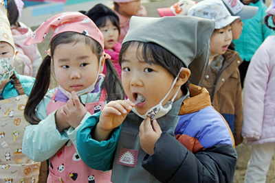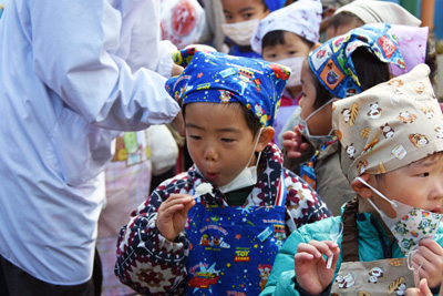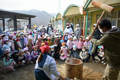 12月17日(水)、町内3保育園で年末の恒例行事の餅つきが行われました。