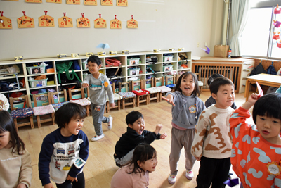 年長さんー「ひらひらちょうちょう」と笑顔いっぱいの「福の神」さんを作ったよ♪